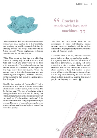crochet serves as a medium for self-expression made with love and care. The crochet club at ADU