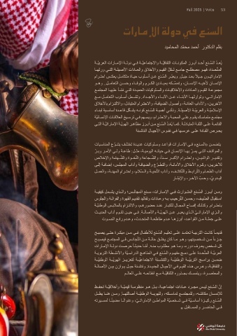 ةّّي�برعلا تاراّّملإا ةّّلود يّّف ةّّي�عامتجلااو ةّّي�فاقثلا تاّّنوكملا زرّّبأ دّّحأ عنّّيسّلا يدّّعُيُ